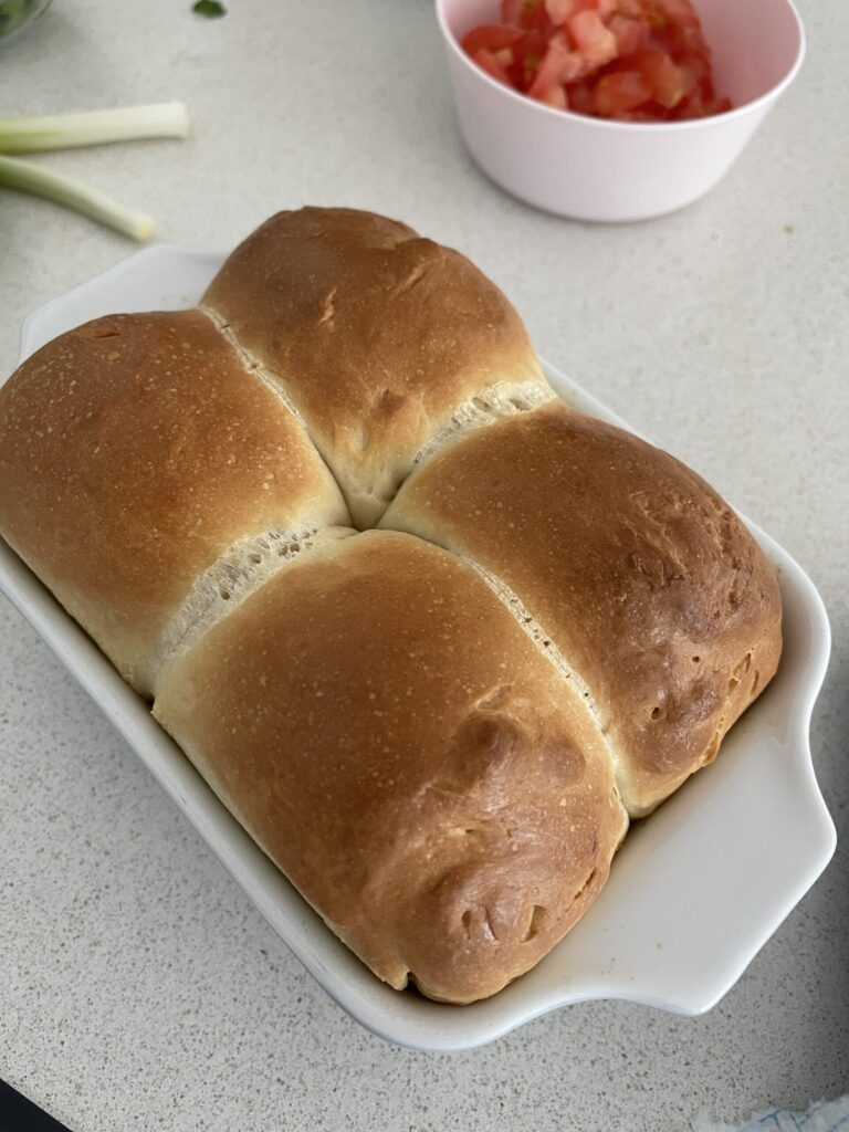 Make your life more simple: I love prepping them first thing in the morning after school and nursery drop-off. After the first rise I shape them and put them in a grease lined baking tray, cover with cling film and pop them in the fridge. I remove them 60 mins before dinner time, let them rise (proof) for 40 mins and pop them in the oven, they are warm and ready for dinner.
